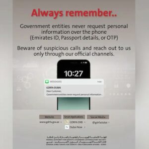 ഫോൺ വിളികളിലൂടെയും മെസ്സേജിലൂടെയും താമസക്കാരുടെ വ്യക്തിവിവരങ്ങൾ ചോർത്തുന്ന തട്ടിപ്പ് സംഘങ്ങൾക്കെതിരെ ജാഗ്രത പാലിക്കണമെന്ന് ദുബായ് ഇമിഗ്രേഷൻ (ജിഡിആർഎഫ്എ) കർശന മുന്നറിയിപ്പ് നൽകി. സർക്കാർ ഏജൻസികളുടെ പേരിൽ വ്യാജരേഖകളും മറ്റും കാണിച്ച് ജനങ്ങളെ…