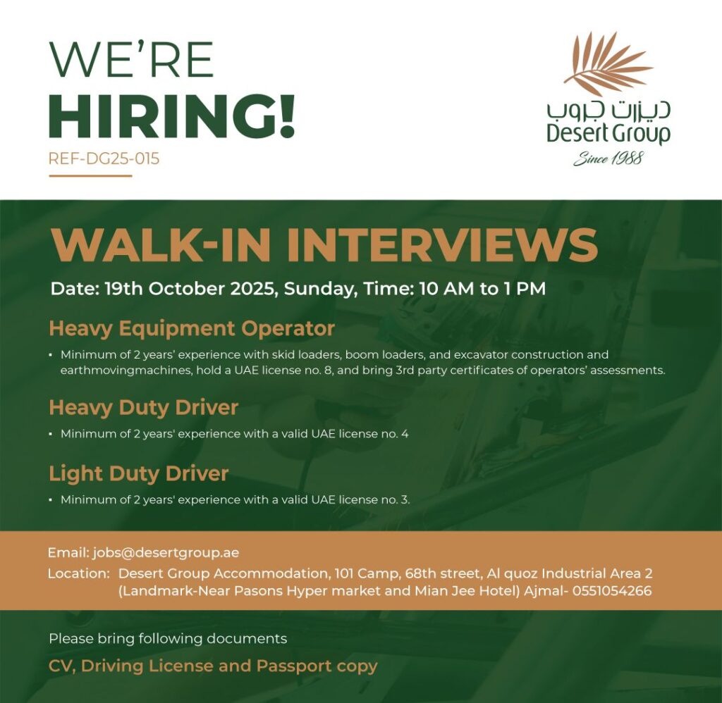 DESERT GROUP UAE CAREER – WALK IN INTERVIEW UPDATES