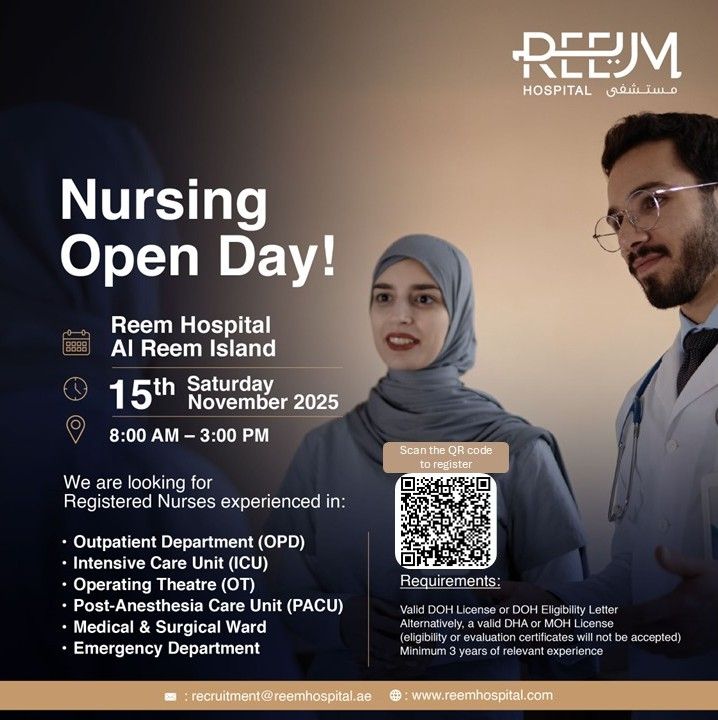 inviting passionate and dedicated Registered Nurses to join our growing team at Reem Hospital, Abu Dhabi!