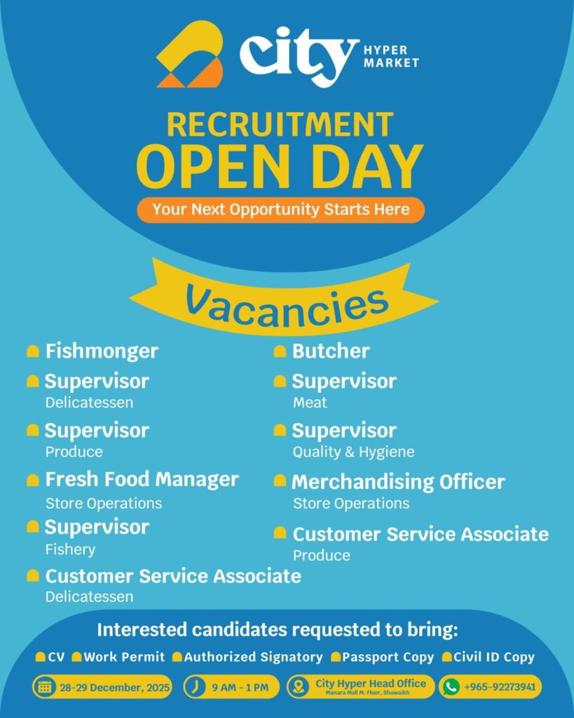 • Venue: City Hyper Head Office, Manara Mall (Mezzanine Floor), Shuwaikh