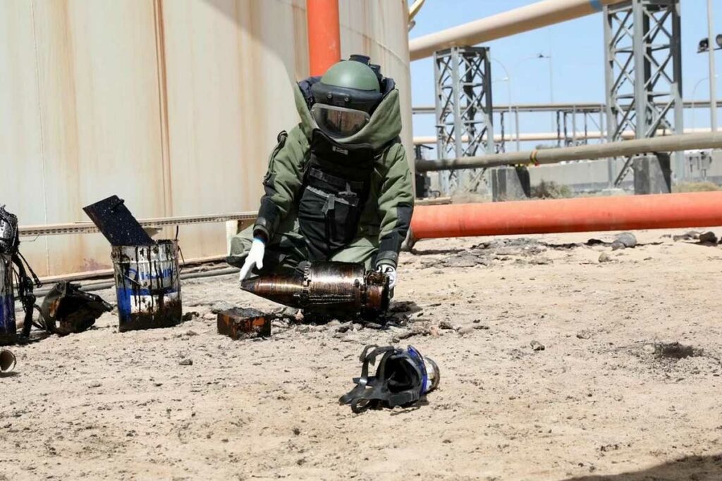 കുവൈത്തിലെ ഒരു ഇന്ധന ടാങ്കിനുള്ളിൽ വീണിരുന്ന ഡ്രോണിന്റെ വാർഹെഡിന്റെ ഭാഗങ്ങൾ സുരക്ഷിതമായി പുറത്തെടുത്ത് നശിപ്പിച്ചതായി കുവൈത്ത് നാഷണൽ ഗാർഡ് അറിയിച്ചു. എഞ്ചിനീയറിംഗ് ബറ്റാലിയനിലെ എക്സ്പ്ലോസീവ് ഓർഡ്നൻസ് ഡിസ്പോസൽ (EOD) വിഭാഗത്തിലെ വിദഗ്ധരാണ് അപകടസാധ്യത നിറഞ്ഞ ഈ ദൗത്യം വിജയകരമായി പൂർത്തിയാക്കിയത്. നാഷണൽ ഗാർഡിന്റെ ഔദ്യോഗിക വക്താവ് ബ്രിഗേഡിയർ ജനറൽ ഡോ. ജദാൻ ഫദൽ ജദാൻ ആണ് ഇക്കാര്യം അറിയിച്ചത്.