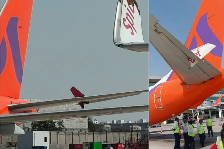 ന്യൂഡൽഹി: ഡൽഹി അന്താരാഷ്ട്ര വിമാനത്താവളത്തിൽ റൺവേയ്ക്ക് സമീപം രണ്ട് വിമാനങ്ങൾ തമ്മിൽ കൂട്ടിയിടിച്ചു. ആകാശ എയർ, സ്പൈസ് ജെറ്റ് വിമാനങ്ങളുടെ ചിറകുകളാണ് പരസ്പരം തട്ടിയത്. വ്യാഴാഴ്ച വൈകുന്നേരത്തോടെയായിരുന്നു സംഭവം. ഡൽഹിയിൽ നിന്നും ഹൈദരാബാദിലേക്ക് പുറപ്പെടാനായി യാത്രക്കാരുമായി റൺവേയ്ക്ക് സമീപം കാത്തുനിൽക്കുകയായിരുന്നു ആകാശ എയർ വിമാനം. ഈ സമയം പാർക്കിങ് ബേയിലേക്ക് വരികയായിരുന്ന സ്പൈസ് ജെറ്റ് വിമാനത്തിന്റെ ചിറക് ആകാശ എയറിൽ വന്ന് ഇടിക്കുകയായിരുന്നു. ഇടിയുടെ ആഘാതത്തിൽ സ്പൈസ് ജെറ്റ് വിമാനത്തിന്റെ ചിറക് ഒടിഞ്ഞ് ആകാശ എയർ വിമാനത്തിനുള്ളിലേക്ക് തുളച്ചുകയറി. രണ്ട് വിമാനങ്ങൾക്കും കാര്യമായ തകരാറുകൾ സംഭവിച്ചിട്ടുണ്ട്.